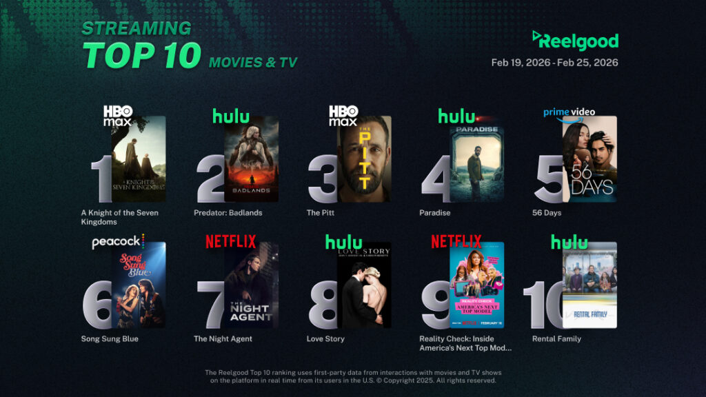 Read MoreReelgood Streaming Top 10: HBO Max dominates as The Pitt holds #1 and Netflix makes a comeback